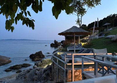 Unser Retreat-Hotel liegt eingebettet in die grüne Hügellandschaft über dem Meer. Es ist ein Ort der Stille, an dem nur das Zirpen der Grillen und das Rauschen der Wellen den Takt angeben.